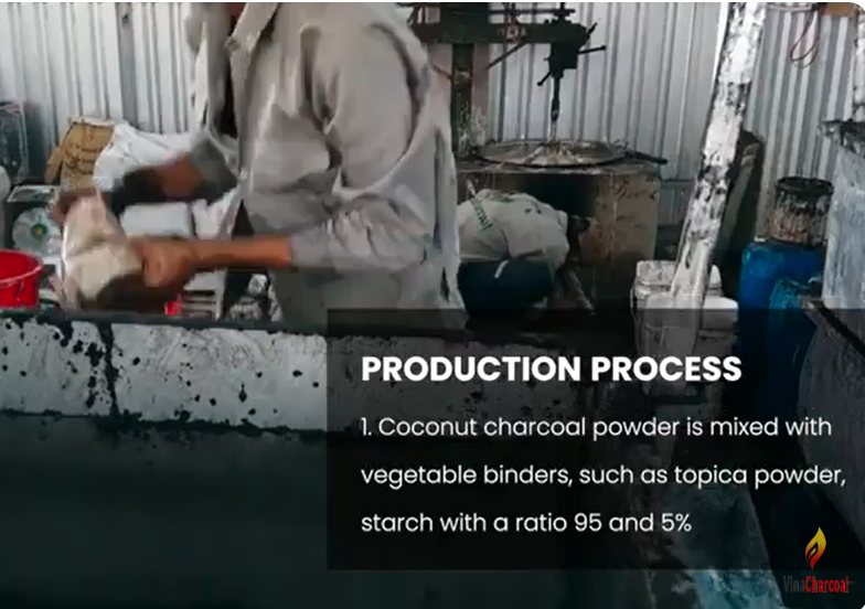 Ingredients: Coconut charcoal powder is mixed with vegetable binders, such as topica powder, starch. They are very safe for health, both of the materials are mix very well with a ratio 95 and 5% and moisture 25%.
